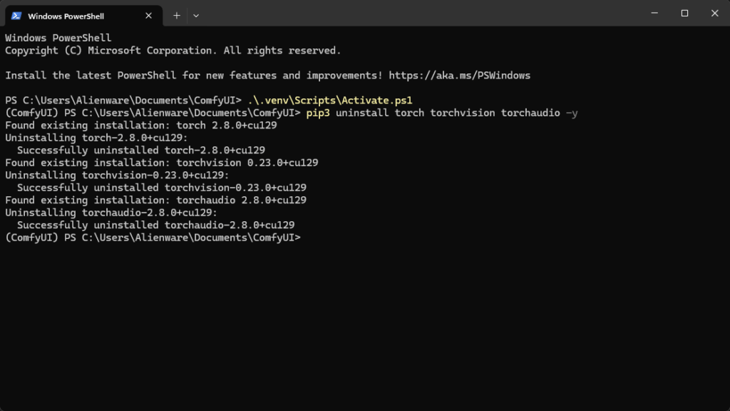 3. 卸载旧的 Torch(如 cu129)