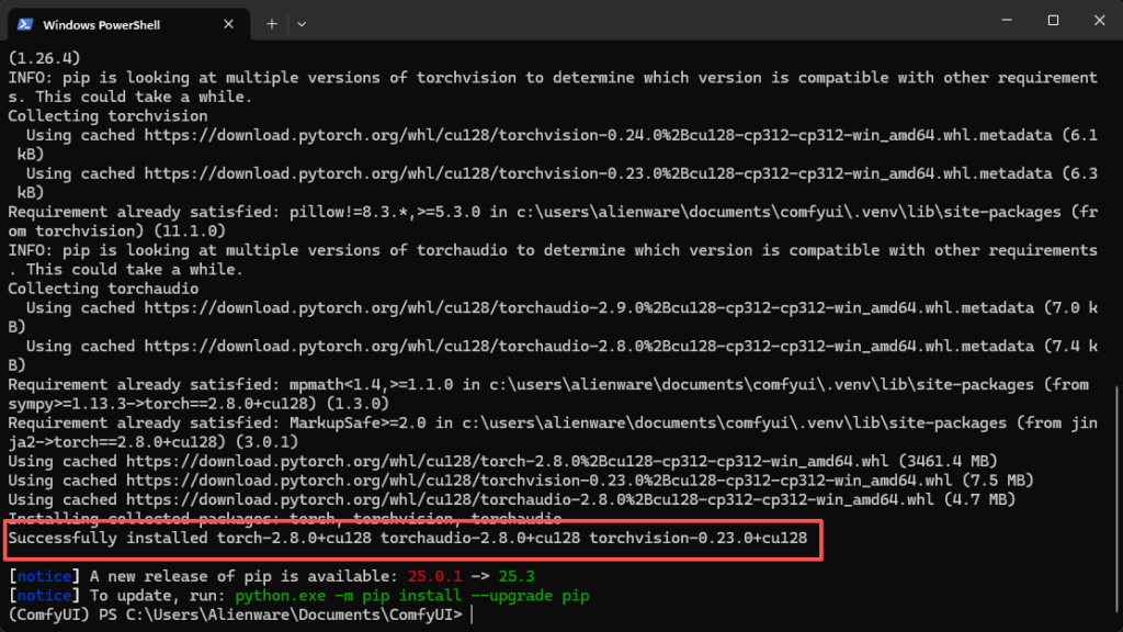 这代表 Torch 已成功切换到 2.8.0+cu128。