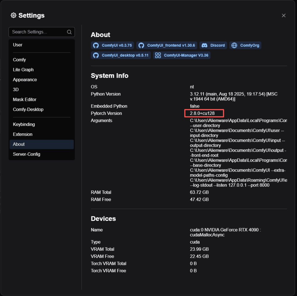 回到 ComfyUI → Settings → About