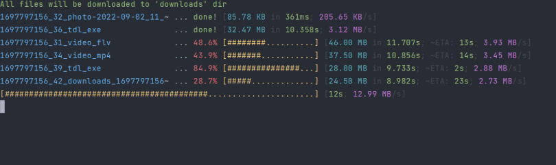 TDL 会自动识别相册、组合消息等内容,并跳过重复文件。